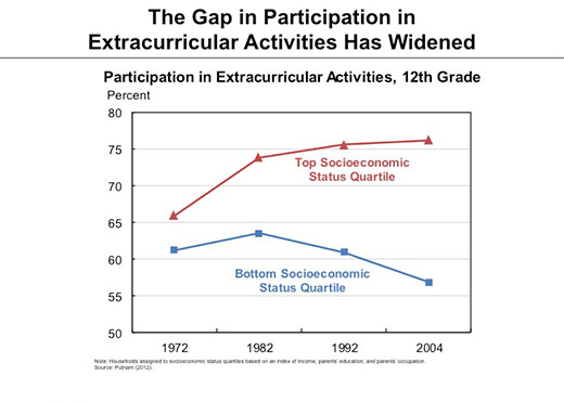 And the following chart shows that there is a growing gap between the top and bottom in participation in extracurricular activities at school.